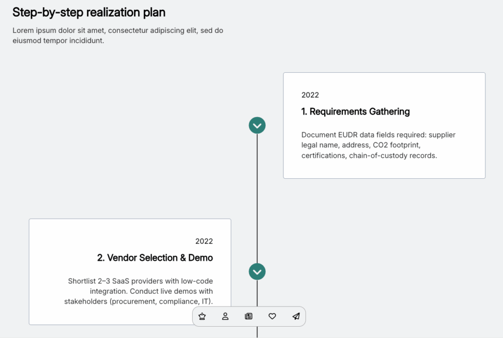 Look for tiles tagged “Do Now” to move immediately on savings and impact—think energy‑efficiency quick wins, like‑for‑like supplier swaps with lower CO2e, and logistics optimizations with one‑click outreach. Ready to act? See “Do Now” Actions.